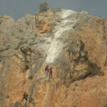 Instalación de mallas de estabilización y embolsamiento, para la fijación de estabilización de los bloques desprendidos y situados a lo largo de la laera con posibilidad de movilizarse y para los bloques del macizo rocoso con peligro de desprendimiento.