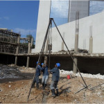 Estudio geotécnico y análisis de sistemas de cimentación para Condominio «La Riviera» en Cuarto Anillo de Santa Cruz de la Sierra. Edificio de 28 plantas y dos sótanos. La proximidad al caudaloso río Paraí condiciona las propiedades geomecánicas del terreno, formado por aluviones de este río, estando formado por arenas y gravas de compacidad variable con intercalaciones de limos y arcillas. El reconocimiento se llevó a cabo mediante sondeos mecánicos a rotación de treinta y cinco metros de profundidad, con la ejecución de ensayos SPT en su interior.