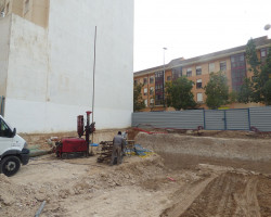 Sondeos mecánicos con extracción de testigo continuo, con la realización de ensayos SPT y tomas de muestra inalterada en su interior. Para determinar naturaleza y capacidad portante del terreno, y establecer la cota del nivel freático.